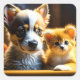 Welpe Hund und Orange Kitten Ai Art Quadratischer Aufkleber