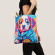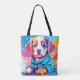 Ein buntes und niedliches Kunstdesign eines Welpen mit blauem Mantel (Dieses Design aus KI). Bestellen Sie noch heute und Embrace the Joy of Shopping!