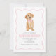 Preppy golden Retriever Geburtstag mit rosa Bogen und rosa kariert.
