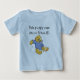 Ein entzückender Welpe setzt an ein blaues Shirt und Text liest "diesen Welpen kann sich kleiden!". Es ist ein großer Entwurf für die Kleinkinder, die gerade lernen, sich zu kleiden!