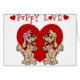 2 niedliche Welpenhunde stehend vor einem großen roten Herz und der Begriff "Welpe Liebe" ist auf T - Shirt, Aufklebern, Totentaschen, Grußkarten, Schlüsselketten, Kaffeetassen und vielem mehr erhältlich.