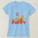 Welpe spielt T-Shirts und Geschenke