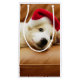 Welpe trägt einen Weihnachtshut und das Lügen auf Kleine Geschenktüte
