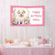 Niedlicher Hund sitzend in rosa Blume personalisierte kleine Mädchen's rosa polka Punkt Geburtstagsbanner.