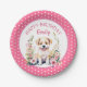 Niedlicher Hund sitzend in rosa Blume personalisierte kleine Mädchen's rosa polka Punkt Geburtstag Party Papier Teller.