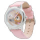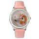 Kinderuhr aus Edelstahl mit rosa Lederarmband