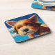 Diese Untersetzer haben einen künstlerischen Hund auf ihnen.