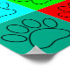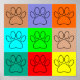 Niedliche Hundepete druckt Cartoon Stil in bunten Quadraten. Originelles Dekordesign für Zuhause, Büros und Hundegeschäfte.
