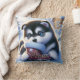 Welpenspiel mit schneebedecktem Winterboot Kissen