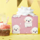 Das Bild zeigt ein sich wiederholendes Muster bezaubernder, flauschiger Bichon Frise Welpen auf einem rosa Hintergrund, durchzogen von weißen Punkten