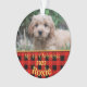 Dieses Dekor ist eine reizvolle Einrichtung für Ihren Weihnachtsbaum und bietet einen Welpen auf einem rot-schwarz karierten Hintergrund. Fügen Sie einfach die Fotos, den Namen und das Geburtsjahr Ihres Welpen zu einem einzigartigen Sake hinzu.