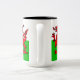 Die Fahne enthält den roten Drachen von Cadwaladr, König von Gwynedd, zusammen mit den Tudor-Farben Grün und Weiß. Es wurde 1485 von Henry VII in der Schlacht von Bosworth benutzt, danach wurde es in Staat zur St. Paul's Cathedral getragen. Der rote Drache wurde dann als Unterstützer der Tudor-königlichen Waffen aufgenommen, um ihre walisische Abstammung zu signalisieren. 1959 wurde sie offiziell als walisische Nationalflagge anerkannt. In einigen Städten gibt es einen Drachen in ihrem Fahnendesign, darunter Cardiff, die walisische Hauptstadt und die walisisch gegründete Stadt Puerto Madryn in Argentinien.