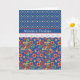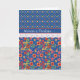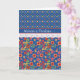Eine Grandelelterntagskarte mit "Happy Grandeleltern Day" in Walisisch mit nostalgischem Ambiente und einem Retro-Blumenmuster, gepaart mit Polka Dots auf einem tiefblauen Hintergrund, getrimmt mit weißem Spitzeneffekt.