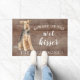Funny Vorsicht vor dem nassen Kisser" Welsh Terrier Dog Türmatte Set auf einem rustikalen Imitat Hintergrund. Besuchen Sie unseren Shop, um eine große Auswahl an Hundebrotten zu sehen