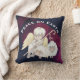 Ein christliches Themenkissen. Entworfen mit einem süßen Engel mit gelben Flügeln, die einen Hirtenkräcker halten. Sitzen mit weißen, flauschigen Lämmern. Navy blauer und bordeauxfarbener Hintergrund, mit winzigen Flecken von Imitaten goldene Funkeln Glitzer (nicht wirklich Glitzer nur ein gedrucktes Bild). Weltfrieden in weißer gebogener Schrift.