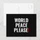 Weltfrieden bitte Schwarz-weiß ohne Kriegsprotest Postkarte