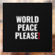Weltfrieden bitte schwarz, weiß und rot Ausrufezeichen minimalistisch modernen mutigen Typografie Anti Krieg Protest Fenster Kling Zeichen.