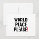 Weltfrieden bitte schwarz, weiß und rot Text Ausrufezeichen minimalistische moderne Anti-Krieg Protest Postcard.