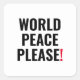Weltfrieden bitte weißes Schwarz Rot kein Kriegspr Quadratischer Aufkleber