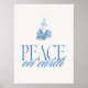 Elegantes blaues Weihnachtsposter mit Vintager Kerzenillustrierung und "Weltfrieden"-Schrift. Ein zeitloses Kunstwerk, das der saisonalen Zuhause- oder Kirchendekoration Ruhe und Schönheit verleiht.