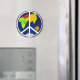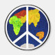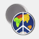 Kommunizieren Sie die Nachricht von "Peace" mit diesem farbenfrohen Knopfmagneten! Die Grafik wurde von South Carolina Kunsthandwerker Amy Kuhl Cox entworfen und zeigt die östlichen Hemisphären, in den Farben der Montessori-Karten.