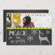 Ein Chalkboard-Look Hintergrund mit coolem, weißem Text, der "Weltfrieden" auf der Vorderseite und "Joy to the World" auf der Rückseite mit Schneeflocken, einer weißen Silhouette Hirsche und bunten Baumleuchten mit Bereichen, die Sie mit Ihren Namen und Foto anpassen können! Diese lustige, farbenfrohe Urlaubsfotokarte ist ein Muss!