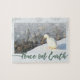 Adorable Foto einer weißen Ente zusammen mit Stockenten Enten im eisigen Wasser mit dem Zitat-Weltfrieden in einem trendigen Skript-Schriftart. Dieses Rätsel hat ein weiches und winterliches Überlagerungsstück, das perfekt für Naturliebhaber ist.