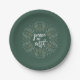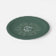 Set eines festlichen Urlaubstisches mit unseren botanischen Weihnachtszeitung-Tellern in Jägergrün, mit einer verzierten Kreideillustrierung in Weiß, Flachs und Salbei-Grün, mit "Weltfrieden" in handgeschriebener Pinseltypografie.