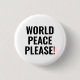 Weltfrieden bitte schwarz, weiß und rot Text minimalistisch modernen Anti-Krieg-Button-Taste.