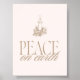Elegantes Urlaubsposter mit Vintager neutraler Kerzenzeichnung und "Weltfrieden"-Schrift. Eine zeitlose Weihnachtswandkunst, die Wärme, Licht und Feststimmung in die Zuhause oder Kirchendekoration bringt.