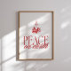 Elegantes Urlaubsplakat mit Vintager, roter Kerzenzeichnung und "Weltfrieden"-Schrift. Eine zeitlose Weihnachtswandkunst, die Wärme, Licht und Feststimmung in die Zuhause oder Kirchendekoration bringt.