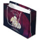 Eine christliche Geschenktasche. Entworfen mit einem süßen Engel mit gelben Flügeln, die einen Hirtenkräcker halten. Sitzen mit weißen, flauschigen Lämmern. Navy blauer und bordeauxfarbener Hintergrund, mit winzigen Flecken von Imitaten goldene Funkeln Glitzer (nicht wirklich Glitzer nur ein gedrucktes Bild). Im Text steht: Weltfrieden und guter Wille gegenüber allen. Frohe Weihnachten aus<name>.