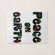 Niedliche und aussagekräftige Weihnachtsgrafik mit rot-grünen Akzenten in jedem Buchstaben. Wünschen Sie Weltfrieden... zu Weihnachten und jeden Tag.
