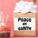 Niedliche und aussagekräftige Weihnachtsgrafik mit rot-grünen Akzenten in jedem Buchstaben. Wünschen Sie Weltfrieden... zu Weihnachten und jeden Tag.
