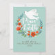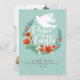 Eine hübsche Weihnachtskarte mit einer Taube in einem Blumenkranz mit den Worten Weltfrieden. Die Weihnachtskarte ist in aquamarin, rot und weiß gestaltet. Personalisieren Sie es mit Ihrem Namen, dem Jahr und Ihrem Foto auf der Kartenrückseite. Entworfen für Sie von BlackBerry Boulevard.