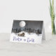 Eine schöne Weihnachtsnachtsnacht mit einer schönen Weltfrieden-Nachricht. Schneesichere Blockhütte unter einem Sternenhimmel und Vollmond. Die Innenseite ist leer, also fühlen Sie sich frei, um Ihre gewünschte Nachricht hinzuzufügen.