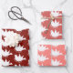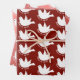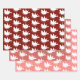 Weltfrieden weiß tauben rot und rosa Weihnachtswrapping Papier Blätter. Jedes Blatt hat eine weiße Taube und den Text "Weltfrieden" in gebogenem Stil in einem anderen rot-rosa Schatten.