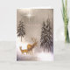 Ein Vater Buck und sein Sohn haben sich bei Weihnachten beim Schnee durch die Kiefernwälder getraut, drei schneebedeckte Pinienbäume und ein Hauch von Rosa für eine Stimmung in den traditionellen Farben.