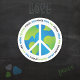 Ein Rundaufkleber mit einer stilisierten Grafik des Globus, ein Symbol für unsere Verbundenheit als globale Gemeinschaft. Umgeben der Erde, ein unberührtes weißes Friedenszeichen und das Wort Frieden in mehreren verschiedenen Sprachen, ein universelles Emblem der Ruhe, das eine Botschaft der Hoffnung, Einheit und der gemeinsamen Sehnsucht nach einer friedlichen Welt aussendet. Eine originelle Kreation von Mango Moon Studio.