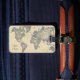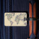 Gepäckanhänger mit einer Weltkarte aus bunten Strichen, ganz nach dem Motto "I haven't been everywhere, but it's on my list".