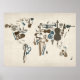 Eine Weltkarte aus den Silhouetten von Musikinstrumenten auf Vintagem Hintergrund. Zu den musikalischen Instrumenten zählen u.a. Geige, Oboe, Gitarre, Banjo, Trompete, Saxophon, Klarinette, französisches Horn, Tuba, Metronom, Schlagzeug und Dreieck.