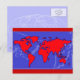 Eine blaue und rote Weltkarte