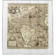 Frühe Weltkarte 1652 veröffentlicht mit Meeresmonstern, die die unbekannten Gebiete der Ozeane schützen und einer Seeschwalbe oder Wale schwimmen im Atlantischen Ozean in der Nähe einer kleinen Insel, die Wasser spucken, wenn ein Segelschiff nähert.
