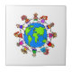 Wunderliche Illustration des niedlichen Cartoon einer Gruppe glücklicher und verschiedener kleiner Strichmännchenjungen und -mädchen, die Hände um die Welt halten. Leicht fertigen Sie besonders an und wählen Sie Ihre eigene Hintergrundfarbe oder addieren Sie Text. Bild verfügbar auf verschiedenen Geschenken und Produkten.