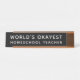 Schwarz-Weiß-Schreibtischschild "World's Okligest Homeschool Teacher'" für Mütter und Väter, die ihr Bestes tun, um zu Hause zu lernen, während sie von Zuhause arbeiten und Eltern sind. Kann vollständig mit Ihrem eigenen Text und Ihren eigenen Farben personalisiert werden.