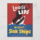 Vintage Poster aus dem Weltkrieg machen coole Postkarten. "Loose Lips Sink Schiffe!" Großartig sammeln Sie mich für einen geliebten, der eingesetzt wurde!