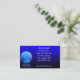 Visitenkarteschablone mit der Weltkugel, die über schwarzen und blauen Hintergrund nachdenkt