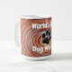 Die helle, rosafarbene, orangefarbene und weiße Tasse des morgendlichen Tees oder Kaffees ist mit einem schwarzen Pfotenprint versehen. "World's Best Dog Walker" kann schnell und einfach an Ihre Bedürfnisse angepasst werden. Ich nahm ein Foto und gab ihm etwas kreatives Editieren, um in diesem bunten wirl zu resultieren. Original-Foto von C. McGouldrick