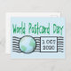 Weltpostkartentag mit Weltkarte und Postkarte