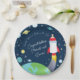 Weltraum-Babydusche Flasche Raumschiff Pappteller